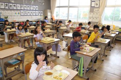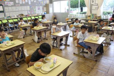 2023年6月30日 13時17分今日は朝からずっと雨です。途中、警報級の激しい雨も降って、外遊びはお預けでした。しかし、今日の給食は「カレー」です。みんな大好き「カレー」です。モヤモヤした天気を振り払うような笑顔で、おいしそうに食べる子どもたちでした。